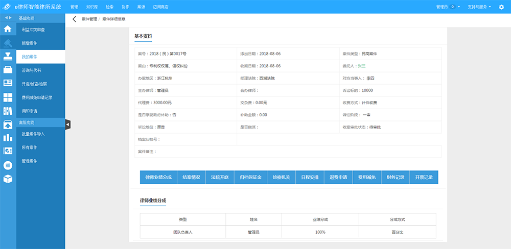 業(yè)務(wù)管理(案件管理、咨詢與代書(shū)、開(kāi)庭、偵查/檢察、案件進(jìn)展記錄)