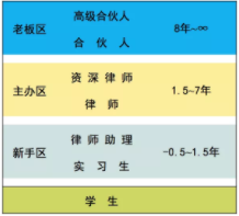圖中-0.5年指的是,在校期間已在律所開展畢業實習,并因此而進入新手區,但尚未正式計算工作年限,處于工作之前的半年中。