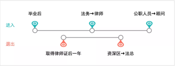 除了上述和律師職業晉升有關的話題外,法律人的職業規劃也是很多人的關注焦點。在此,我們也簡述一下律師職業的進入和退出機制。