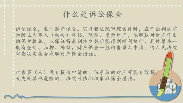 訴訟保全很多人不知道是什么概念,簡單的來講就是指人民法院在利害關(guān)系人起訴前或者當(dāng)事人起訴后,為保障將來的生效判決能夠得到執(zhí)行或者避免財(cái)產(chǎn)遭受損失,對(duì)當(dāng)事人的財(cái)產(chǎn)或者爭議的標(biāo)的物,采取限制當(dāng)事人處分的強(qiáng)制措施。